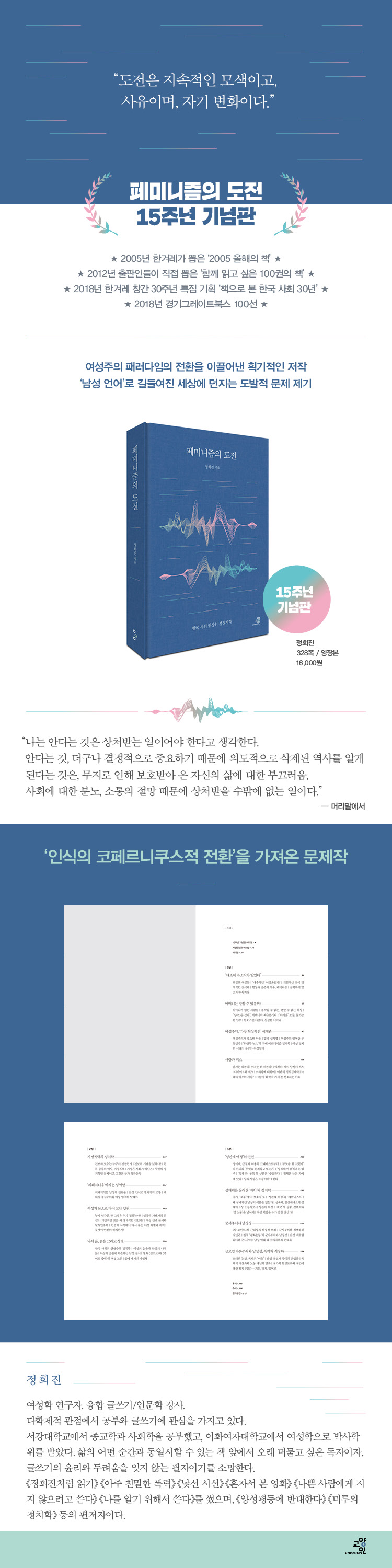 ‘페미니즘 교과서’로 평가받으며, 페미니즘에 대한 인식의 전환을 이끌어낸 《페미니즘의 도전》이 출간 15주년을 기념해 새로운 머리말과 새로운 모습으로 돌아왔다.