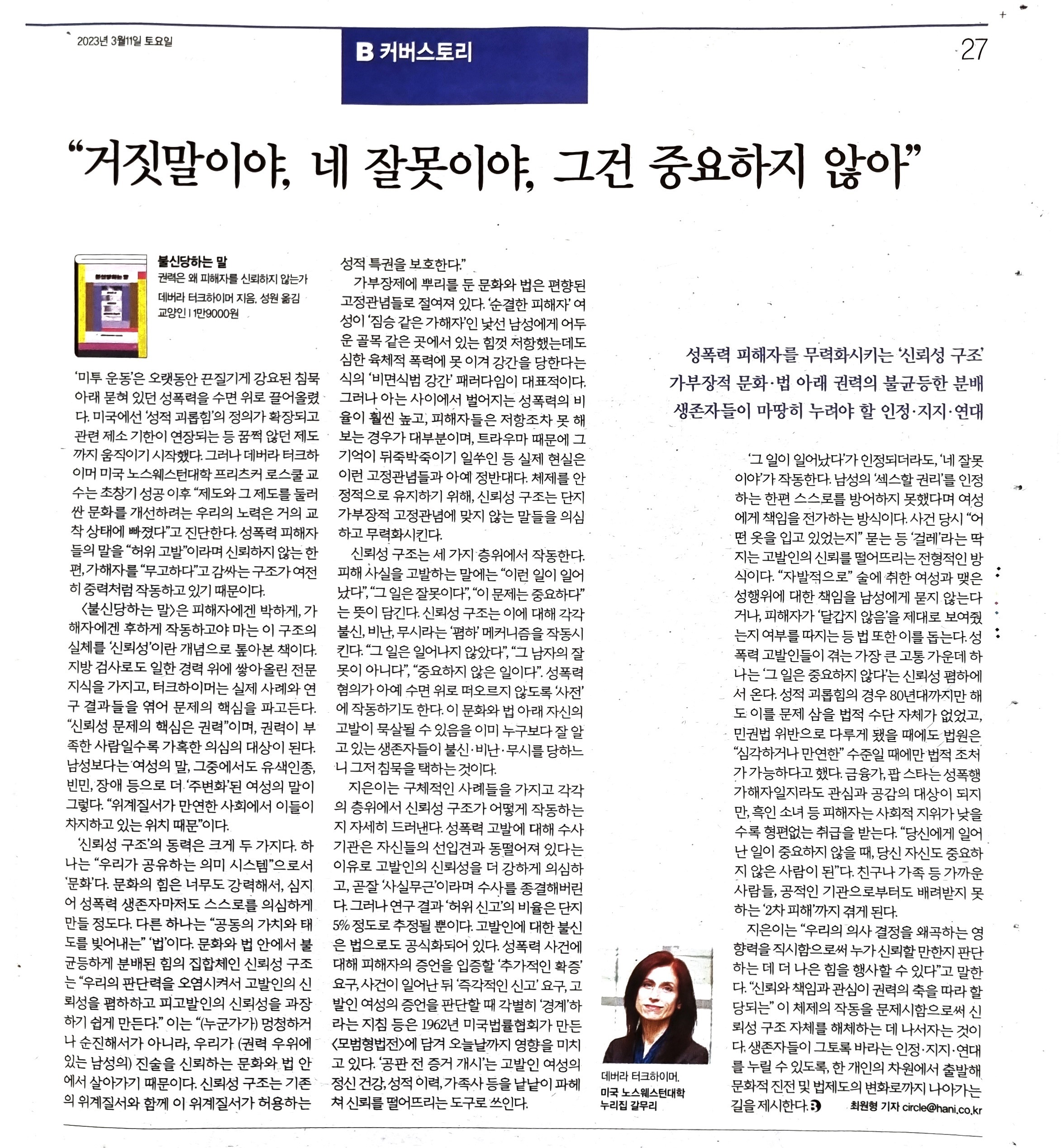 [한겨레] 성폭력 피해자 몰아세우는 ‘신뢰성 구조’, 어떻게 작동하나